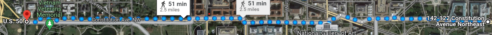 To understand and convey the use of the applications and framework services, the group developed a realistic situation in which the work would apply. Say there is a straight-line road running east-west. An example of such a road is shown below, at latitude 38.892 (Washington D.C.).