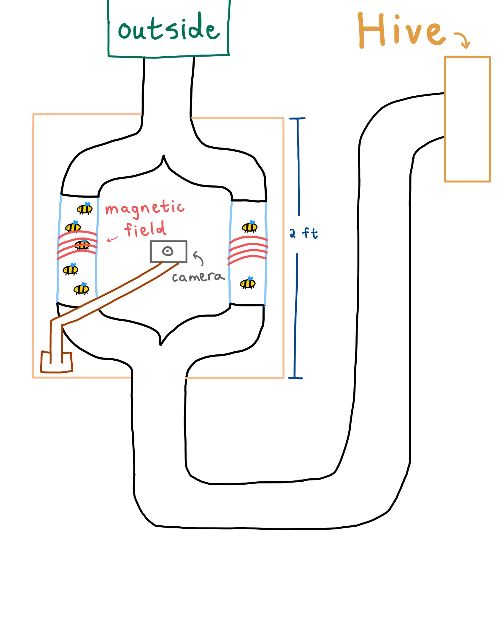 Apparatus Mockup: Creating an apparatus in which the bees would come through from the tubes. The raspberry pi would be placed directly above the apparatus and the current would run through the apparatus.